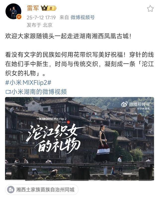 浅色为底、深色花边,色彩艳丽夺目、对比强烈……此次,龙玉门特别为湖南小米之家精心制作了100份花带手机挂链,由门店购指定产品赠送,普通用户还可以参与新浪微博线上互动抽奖。活动期间,线上线下用户积极参与,颇为火爆,还受到了不少点赞。网友们纷纷表示:“太好看了吧!”“想要!”“小米手机的格调与凤凰非遗美学完美融合!”民族非遗华丽“转身” 与科技生活完美融合“花带里斜纹是山,菱格是田,波纹是沱江水……”随着龙玉门的讲述,轻捻着花带,湘西的山水便触手可及。苗族,是没有文字的古老民族。在漫长的迁徙过程中,是苗绣、花带中的花纹记录了苗族的历史记忆。而这份记忆,又被传到了现代科技生活中,为科技注入了一个民族的情感和历史温度。小米创办人、董事长兼CEO雷军在社交平台写道:“欢迎大家随镜头一起走进湖南湘西凤凰古城!看没有文字的民族如何用花带织写美好祝福。”